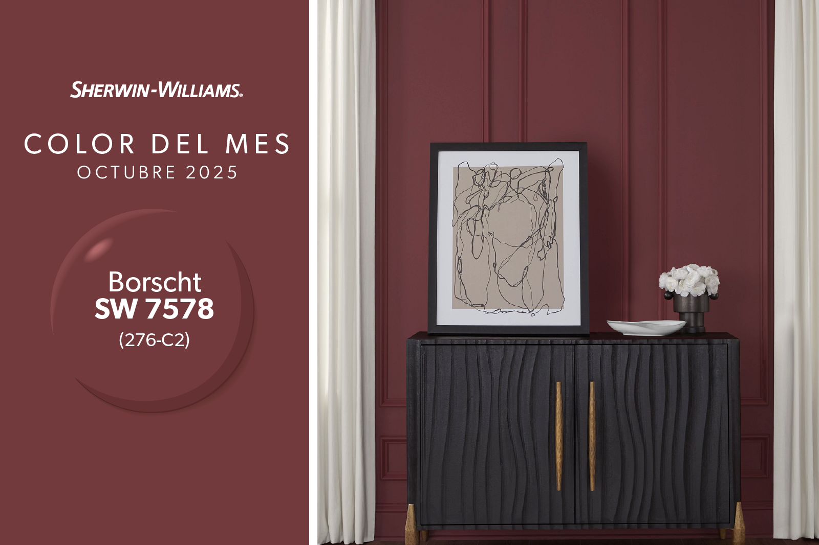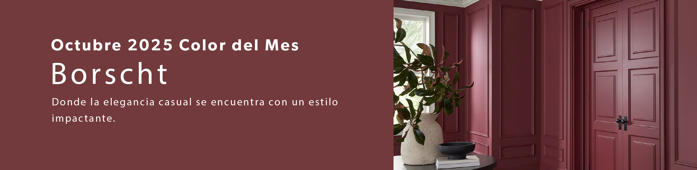 Borscht es un tono sofisticado que funciona perfectamente con colores neutrales, tonos de madera cálidos y un amplio rango de acentos metálicos. Su punto fuerte es derrochar color, tanto como agregando profundidad en elementos decorativos o siendo el candidato ideal para hacer los espacios invitantes en salas y comedores donde el confort y el carácter se vuelven uno solo.