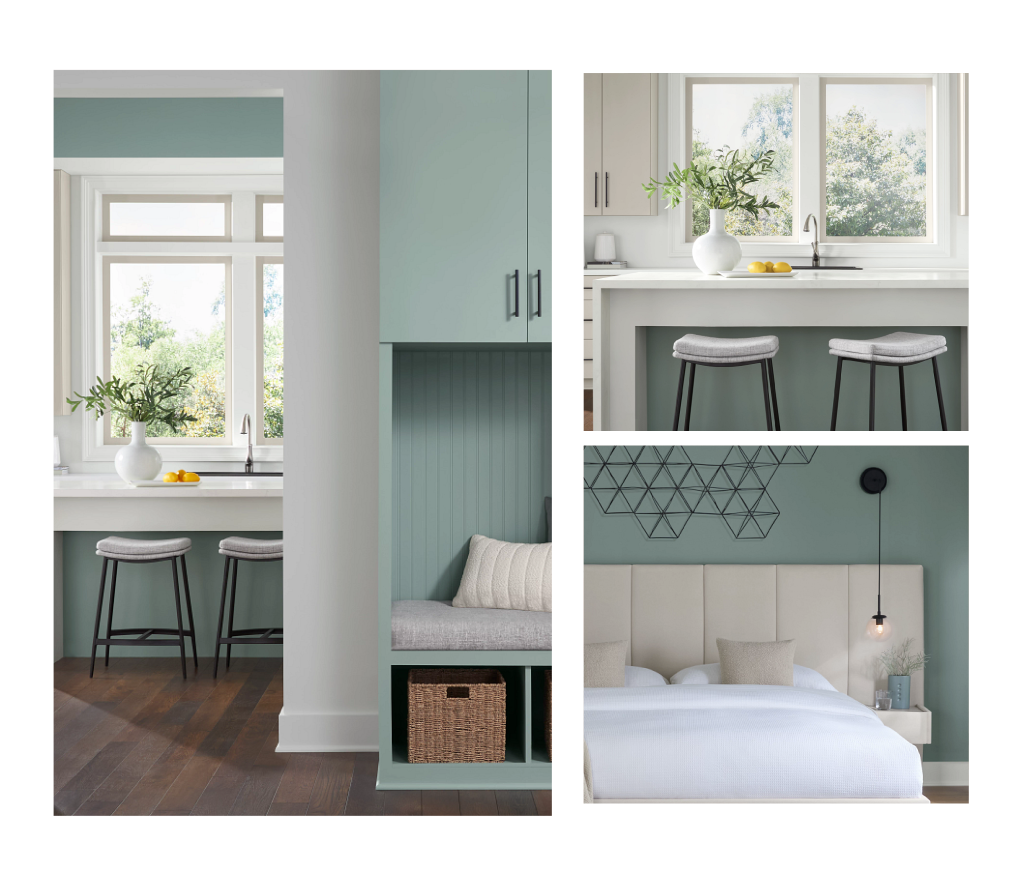 Halcyon Green extraído de la serenidad que encontramos en los amaneceres, este color es la respuesta a nuestra necesidad por espacios restaurativos. Este color de pintura tiene un sub-tono azul grisáceo que promueve una elegancia silenciosa, convirtiendo cualquier espacio en un santuario. Desde el dormitorio principal hasta el de visitas y cualquier habitación entre ellas, este color te conecta con tu hogar, al combinarlo con elementos naturales; dándote la bienvenida a un mundo de comodidades reconfortantes pero que se sienten lujosos a la vez.