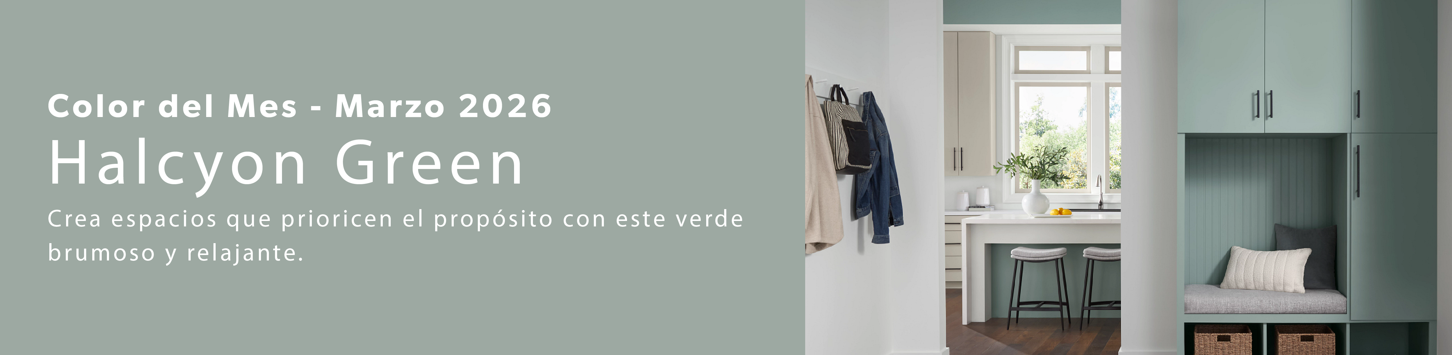 Con la simplicidad y la funcionalidad como guía de esta historia de color, Halcyon Green emerge como un contrapunto intencional a los blancos y grises clásicos. Ideal para interiores que buscan la funcionalidad y minimalistas, estos tonos trabajan en conjunto para crear espacios pensados para la durabilidad, la practicidad y la vida cotidiana.