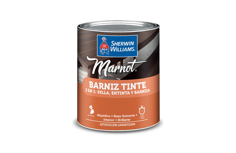 Es un Barniz tinte alquídico brillante (transparente) especialmente formulado para proteger superficies interiores, protege la madera y le imprime color en un solo paso además de brindar protección.